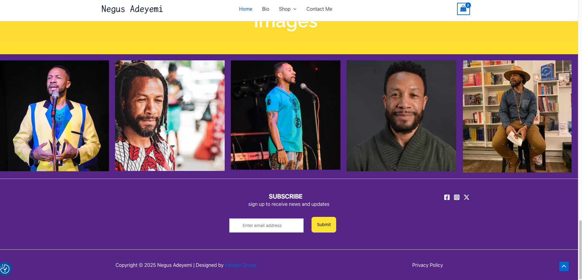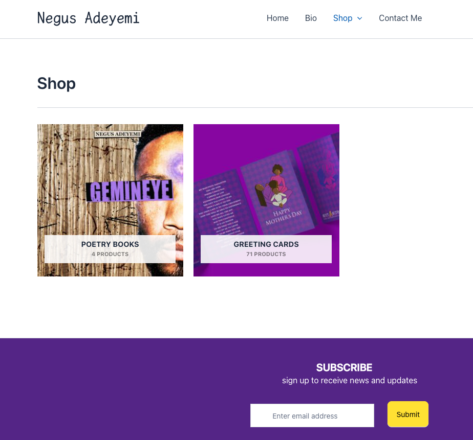 Design website website to showcase biography, spoken word, videos, and images. A shopping page should exist to sell books and greeting cards